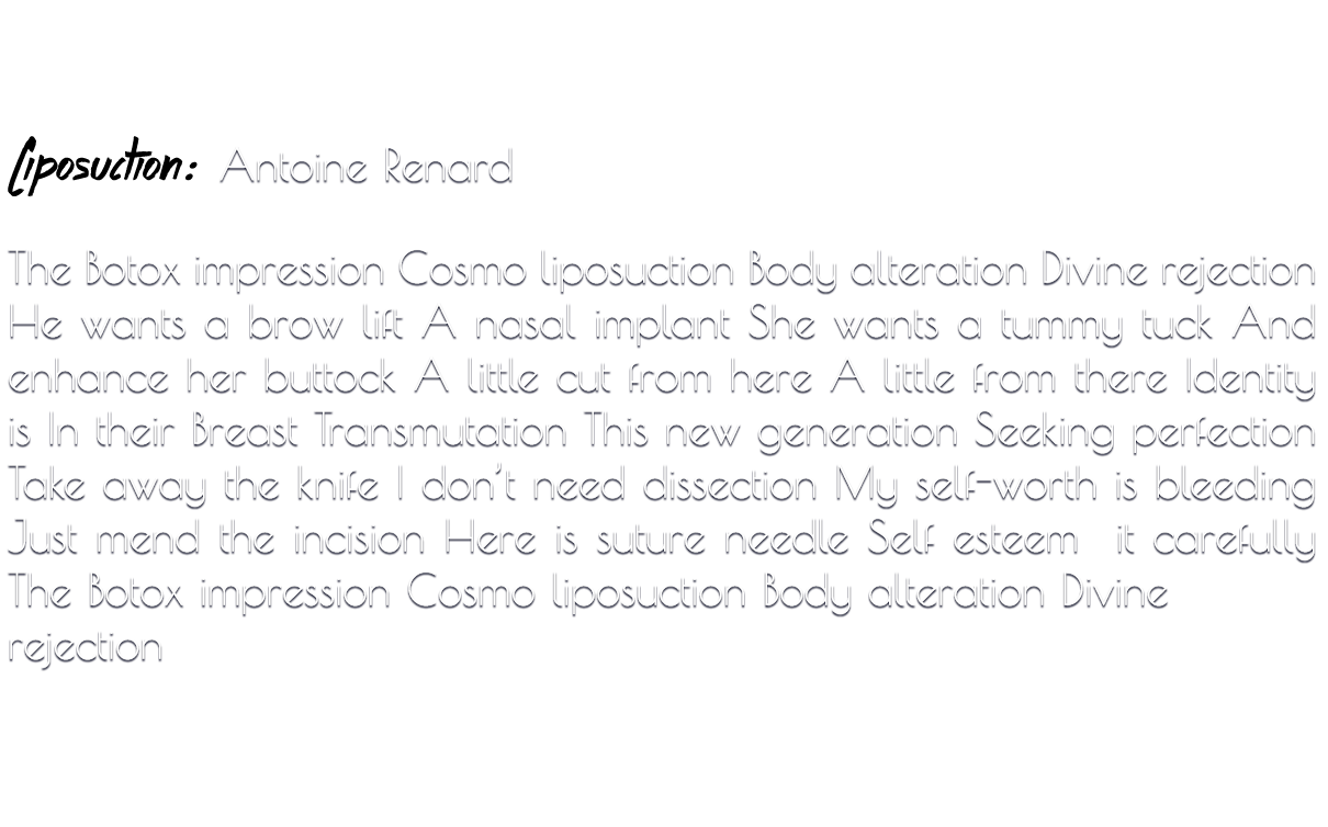 Texts and narrations contributed by Anna Sagström + Matilda Tjäder, Susy Oliveira, Emmy Skensved, Zayne Armstrong, Dorota Gaweda, Emma Siemens-Adolphe, Susan Ploetz, Jeni Fulton, Kate Brown, Eglė Kulbokaitė, Wojciech Olejnik, Antoine Renard, Mark Stroemich, Gregory Blunt, Robin Murphy, Carl Palm + Sebastian Rozenberg, Lauryn Youden, Viktor Timofeev, Zuzanna Ratajczyk, Beny Wagner, Shaun Motsi, Luca Iemi, Dylan Aiello, Alex Turgeon, Bitsy Knox, Clémence de la Tour du Pin